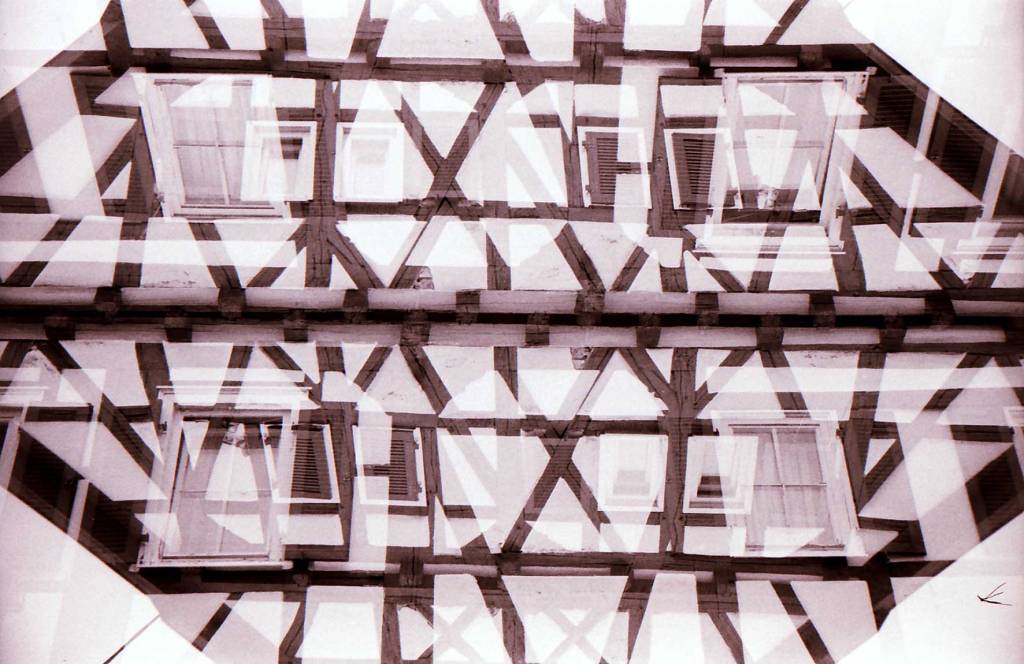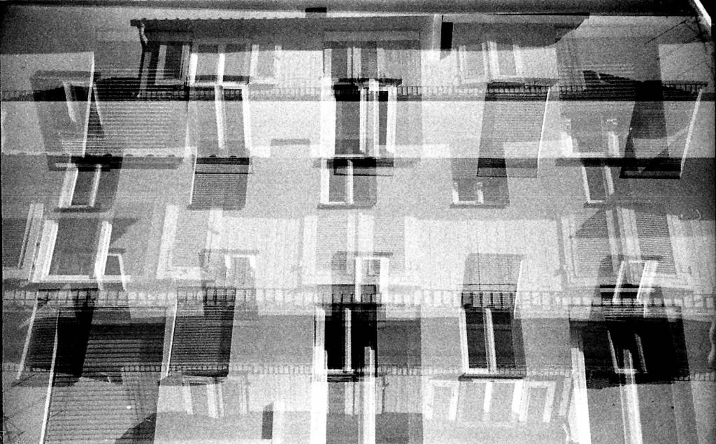 Ausgehend von diesen Ideen bietet die Mehrfachbelichtung eine Methode, um diese Überlagerung räumlicher Bedeutungen unter demselben architektonischen Signifikanten zu visualisieren. Sie schlägt zudem neue Lesarten des Raums durch eine fantastische Geometrie vor und erzielt so ein Gefühl seltsamer Vertrautheit auf Basis einfacher geometrischer Formen.